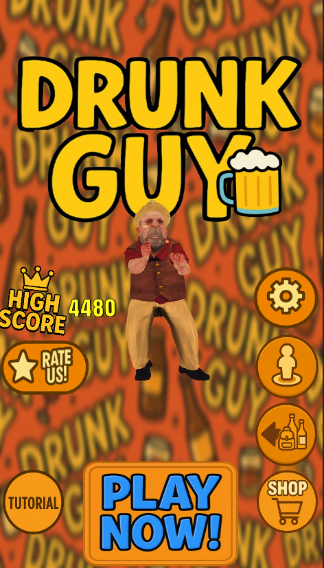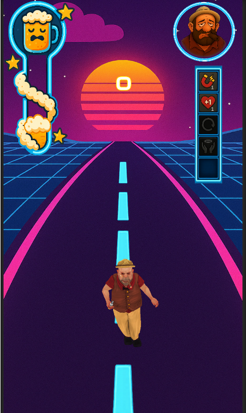 In Drunk Guy, you guide a staggering character trying to walk straight down the road. Each step forward makes the game harder — the more distance you cover, the wobblier he gets!